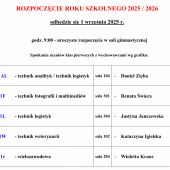 1.            klasa 1FW - technik fotografii i multimediów / technik weterynarii                                           2.            klasa 1L - technik logistyk                                                                                                             3.            klasa 2FW -...