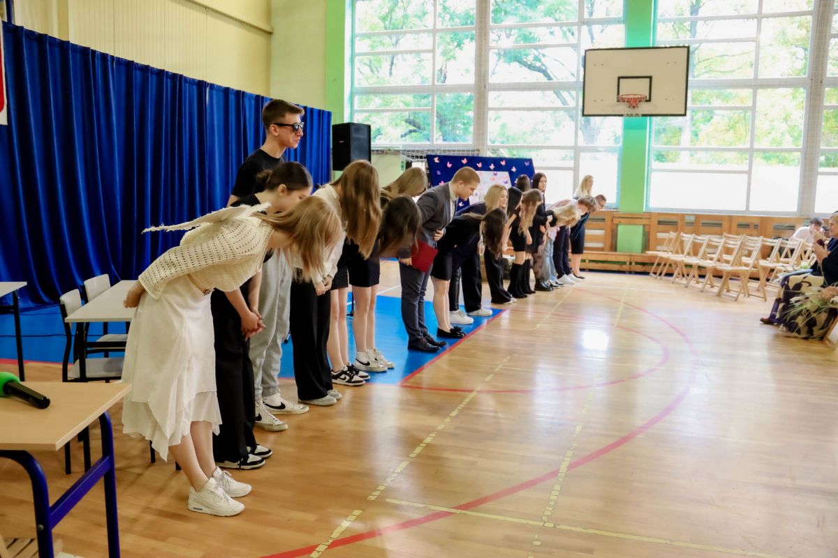 Podczas uroczystości nie zapomnieliśmy o tych, którzy nie mogli tak pięknie świętować, jak my, bo powódź zniszczyła im szkoły. Społeczność uczniowska przygotowała dla nich dary, które zostały przekazane do punktu zbiórki.