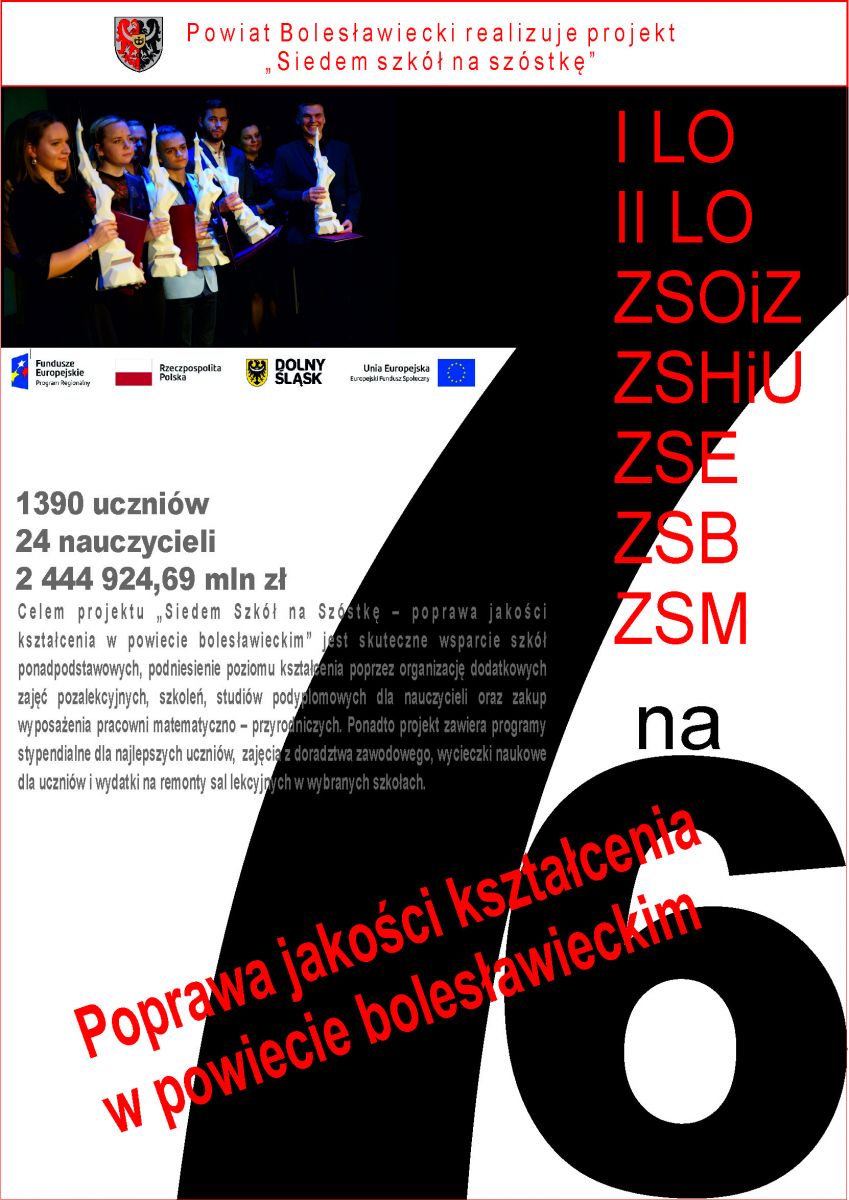 w powiecie bolesławieckim”, którego finał się zbliża jeszcze w bieżącym roku jest skuteczne wsparcie szkół ponadpodstawowych,  podniesienie poziomu kształcenia poprzez organizację dodatkowych zajęć pozalekcyjnych, szkoleń, studiów podyplomowych dla nauczycieli oraz zakup wyposażenia pracowni matematyczno – przyrodniczych. Ponadto projekt zawiera programy stypendialne dla najlepszych uczniów, zajęcia z doradztwa zawodowego, wycieczki naukowe dla uczniów i wydatki na remonty sal lekcyjnych w wybranych szkołach.