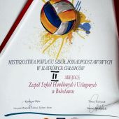 Nasi uczniowie w składzie: Karol Borowski, Adrian Borucki, Marcel Ferlewicz, Maksymilian Frydrychowicz, Dominik Grabowy, Kacper Kijowski, Andreas Koptyra, Kamil Kozdra, Piotr Zieliński zajęli II miejsce w Mistrzostwach Powiatu Szkół Ponadpodstawowych w Siatkówce Chłopców.