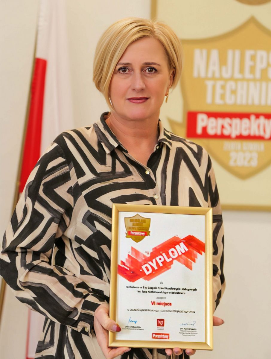 22 lutego 2024 r. w Auli Politechniki Wrocławskiej odbyło się uroczyste rozdanie nagród Perspektywy 2024. W uroczystości brała udział Pani Dyrektor Jolanta Kus, która odebrała Srebrną Tarczę dla Zespołu Szkół Handlowych i Usługowych w Bolesławcu. Nasza szkoła szczyci się już jedną bązową, pięcioma srebnymi i jedną złotą tarczą w ranknigu najlepszych techników na Dolnym Śląsku.