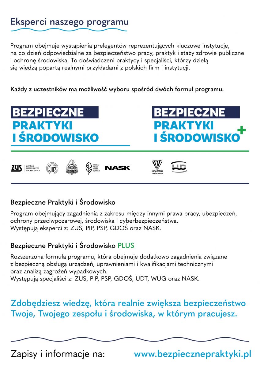 Uczniowie pozyskali praktyczną wiedzę od ekspertów z uznanych instytucji państwowych tj. ZUS, PIP, PSP, GDOŚ, UDT, WUG oraz NASK, poznali realne przykłady i rozwiązania z codziennej praktyki. Poprzez uczestnictwo w szkoleniu poszerzyli swoją wiedzę z zakresu bezpieczeństwa, cyberbezpieczeństwa, ochrony przeciwpożarowej, ochrony środowiska, prawa pracy, ubezpieczeń. Szkolenie było wartościowym doświadczeniem, które wspiera wszechstronny rozwój ucznia.