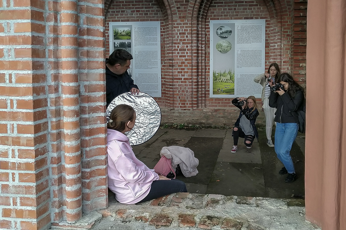 Oprócz krajobrazu uczniowie wykonali przy oświetleniu naturalnym. Robiąc portret ,młodzież zwracała uwagę na pozę, wyraz twarzy, gest i bezpośredniość . Zdjęcia powstawały w otoczeniu pięknych stawów, starych drzew oraz mauzoleum założycieli parku, hrabiostwa von Reden.