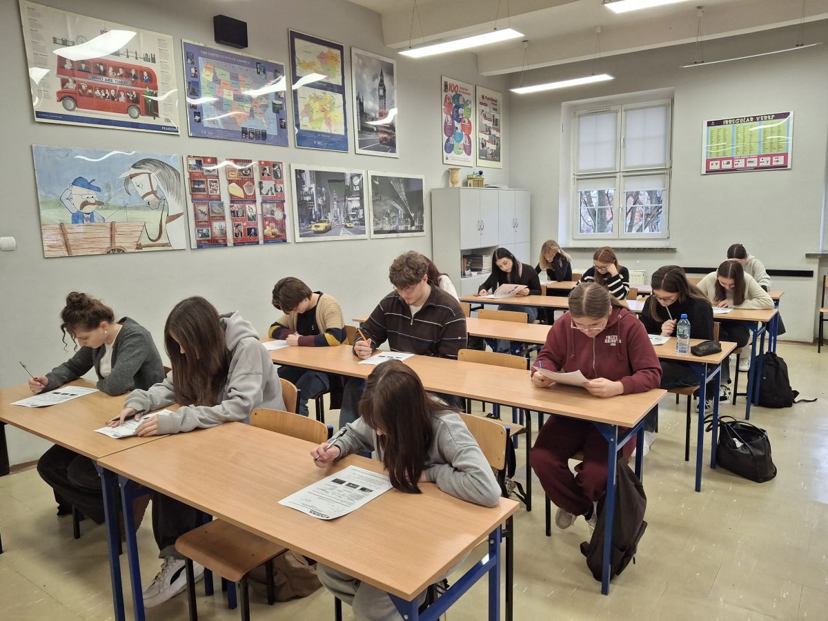 W czwartek 20.11.2025 r. w naszej szkole odbył się Powiatowy Konkurs Języka Niemieckiego. W etapie szkolnym udział wzięło 18 uczniów z klas 1-5 Technikum. Konkurs, organizowany przez Powiatowe Centrum Edukacji i Kształcenia Kadr w Bolesławcu, miał na celu promowanie nauki języka niemieckiego oraz rozwijanie kompetencji językowych młodzieży. Jednocześnie popularyzowano kulturę krajów niemieckojęzycznych, a uczniowie mieli okazję wykazać się swoimi umiejętnościami, kreatywnością i twórczy myśleniem.