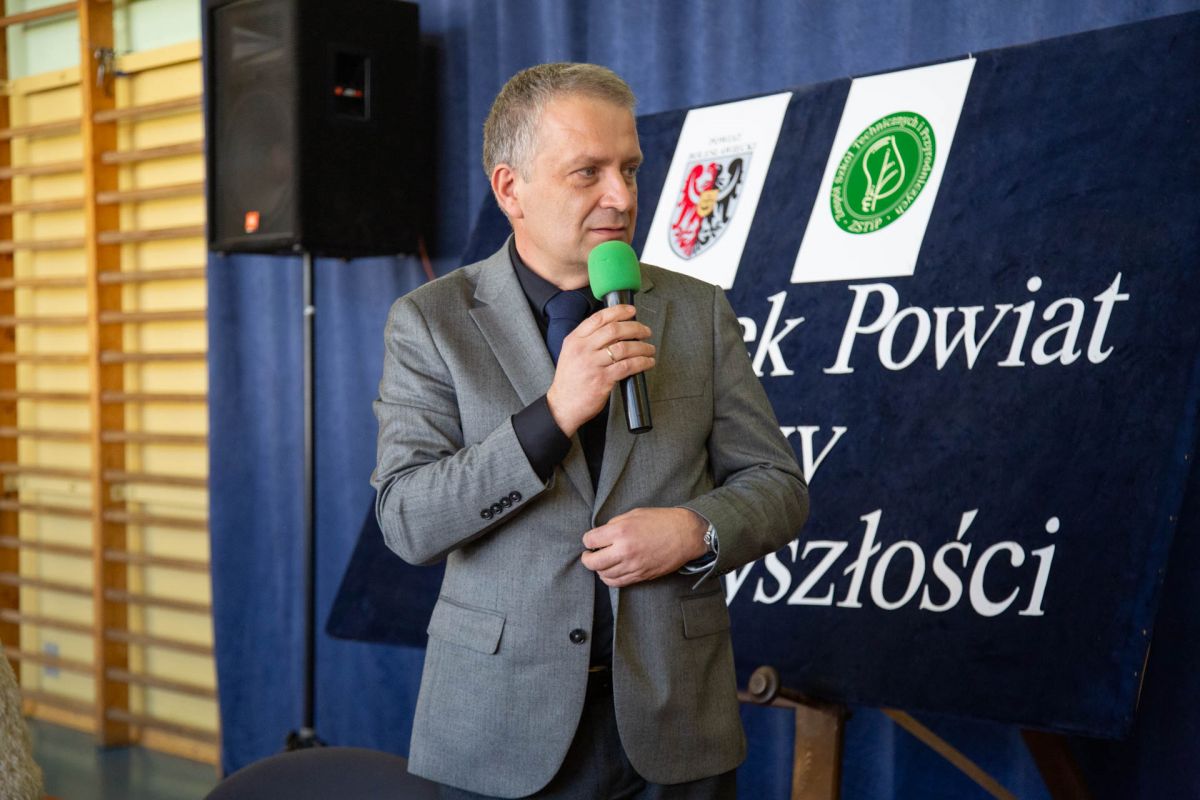 W dniu 27 marca 2026r. uczniowie klas trzecich, czwartych i piątych Zespołu Szkół Technicznych i Przyrodniczych w Bolesławcu wzięli udział w spotkaniu z Panem Tomaszem Gabrysiakiem, Starostą Bolesławieckim oraz z panią Katarzyną Ziębą, Naczelnik Edukacji, Kultury i Sportu.