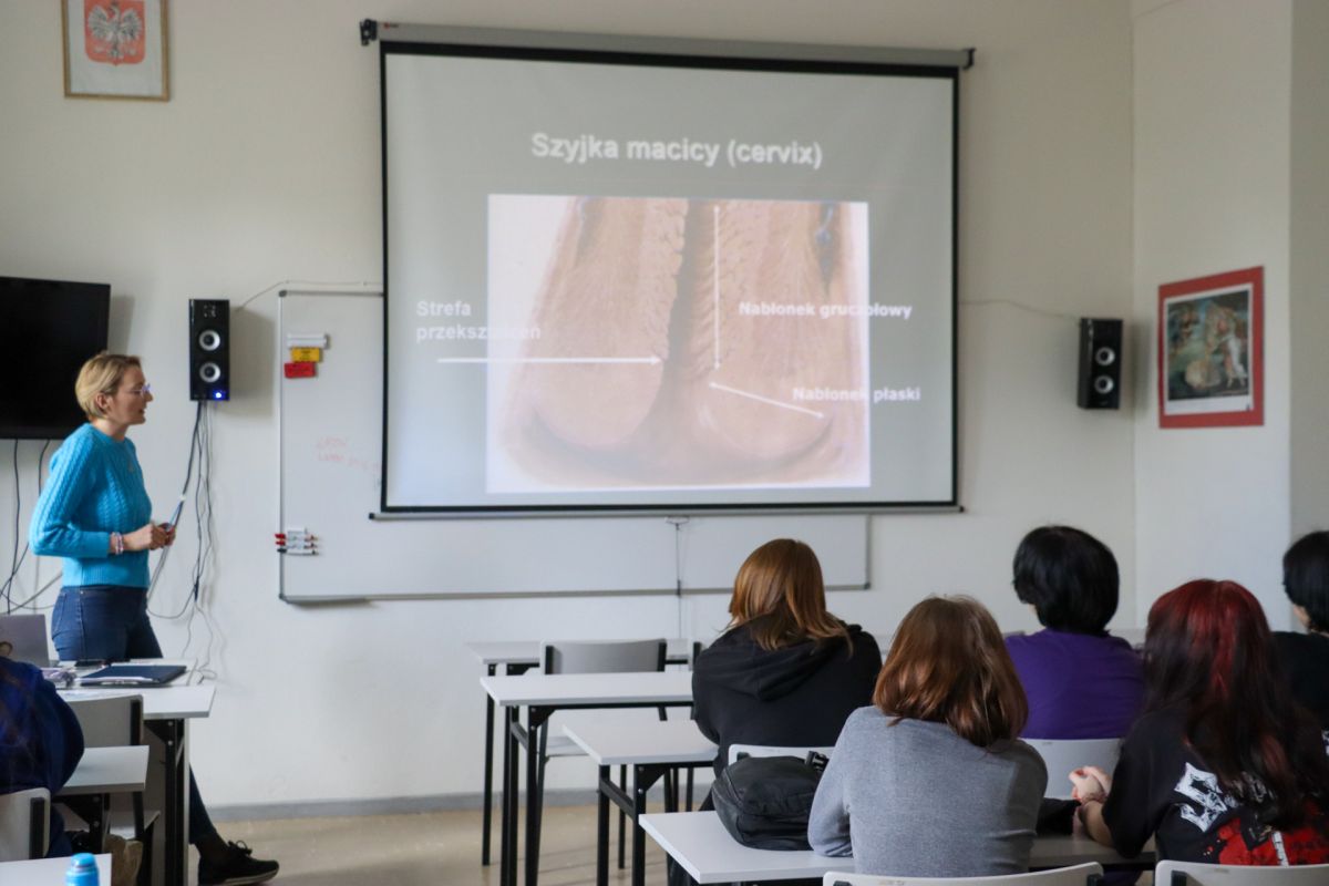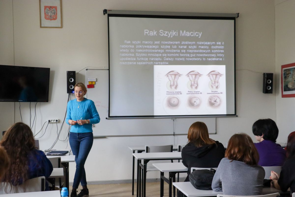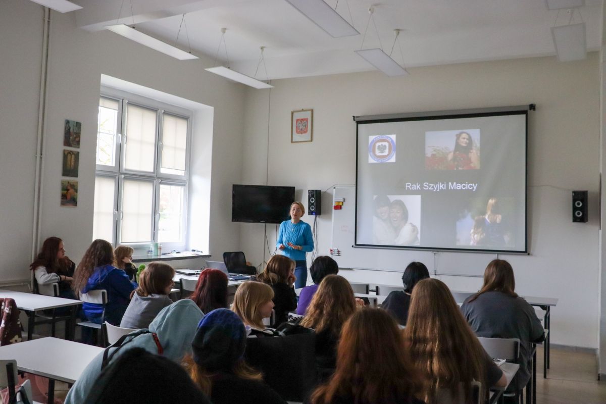 18, 21 i 25 kwietnia 2023 r. uczniowie klas pierwszych brali udział w spotkaniach z przedstawicielką bolesławieckiego Sanepidu, panią Kamilą Kołakowską, w ramach programu „Wybierz Życie - Pierwszy Krok”. Celem spotkań było zapoznanie młodzieży z profilaktyką raka szyjki macicy.